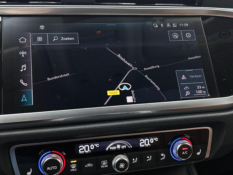 Alle functies die u onderweg nodig heeft, worden permanent geregistreerd en zijn afleesbaar op het digitale dashboard. Ongelukken of parkeerschade? Dat gebeurt u niet meer, met de achteruitrijcamera. Adaptive cruise control is een comfortabele en veilige optie. Het systeem reguleert de snelheid en houdt automatisch afstand tot uw voorligger. Deze Audi Q3 Sportback is 'connected'. Belangrijke functies worden permanent gemeten en zijn uit te lezen via een speciale app, ook op afstand. Een goede veiligheidsvoorziening is de stuurbediening voor belangrijke functies. De auto is natuurlijk voorzien van een navigatiesysteem met harde schijf en het audio-installatiesysteem biedt glasheldere geluidskwaliteit dankzij DAB-ontvangst. Met electronic climate control, lederen sportstuur, regensensor, automatisch dimmende binnenspiegel, isofix-aansluiting en centrale deurvergrendeling met afstandsbediening is deze Audi helemaal compleet.
