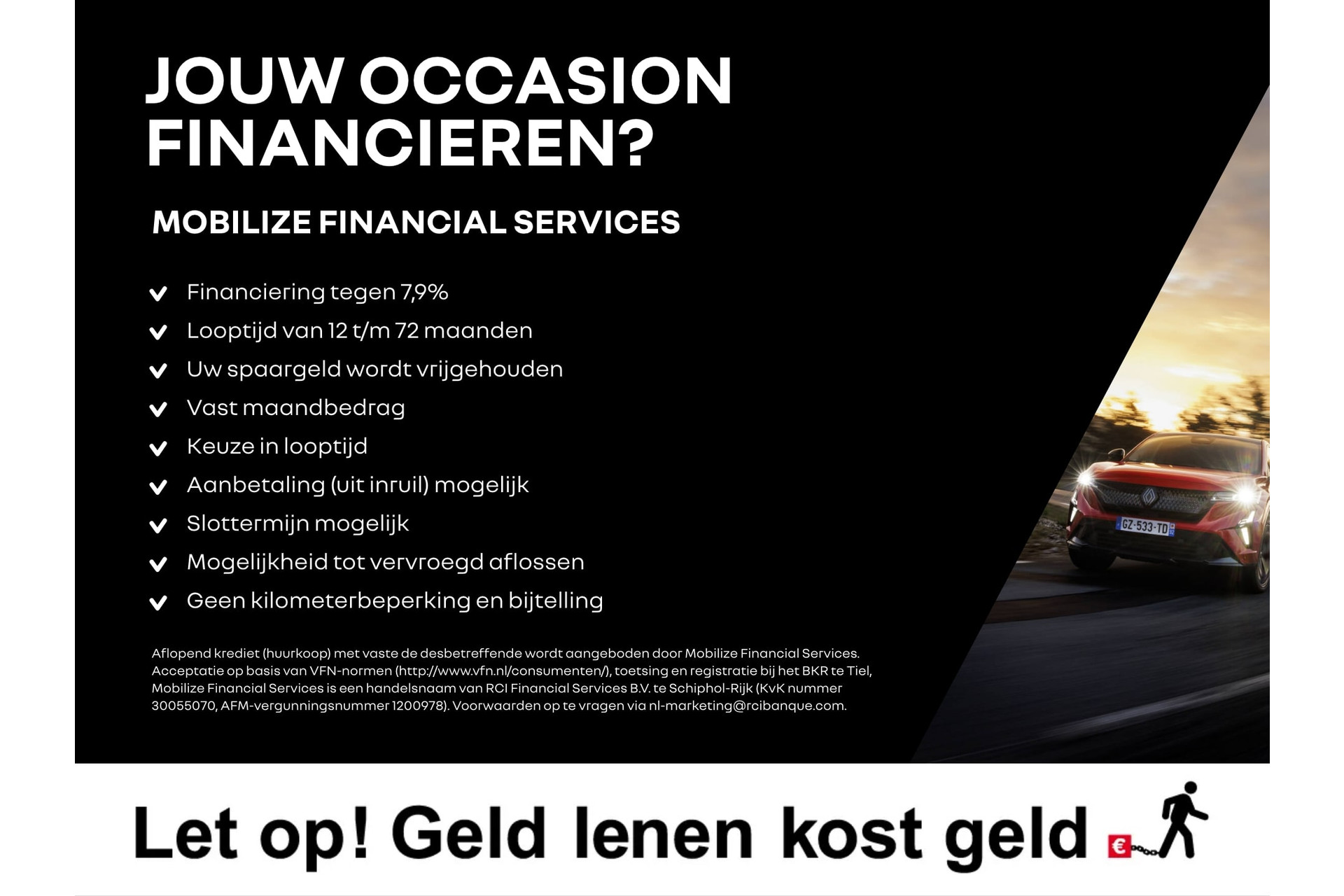 Bij deze auto adverteren wij met de slogan ‘Vandaag kopen = vandaag rijden’.