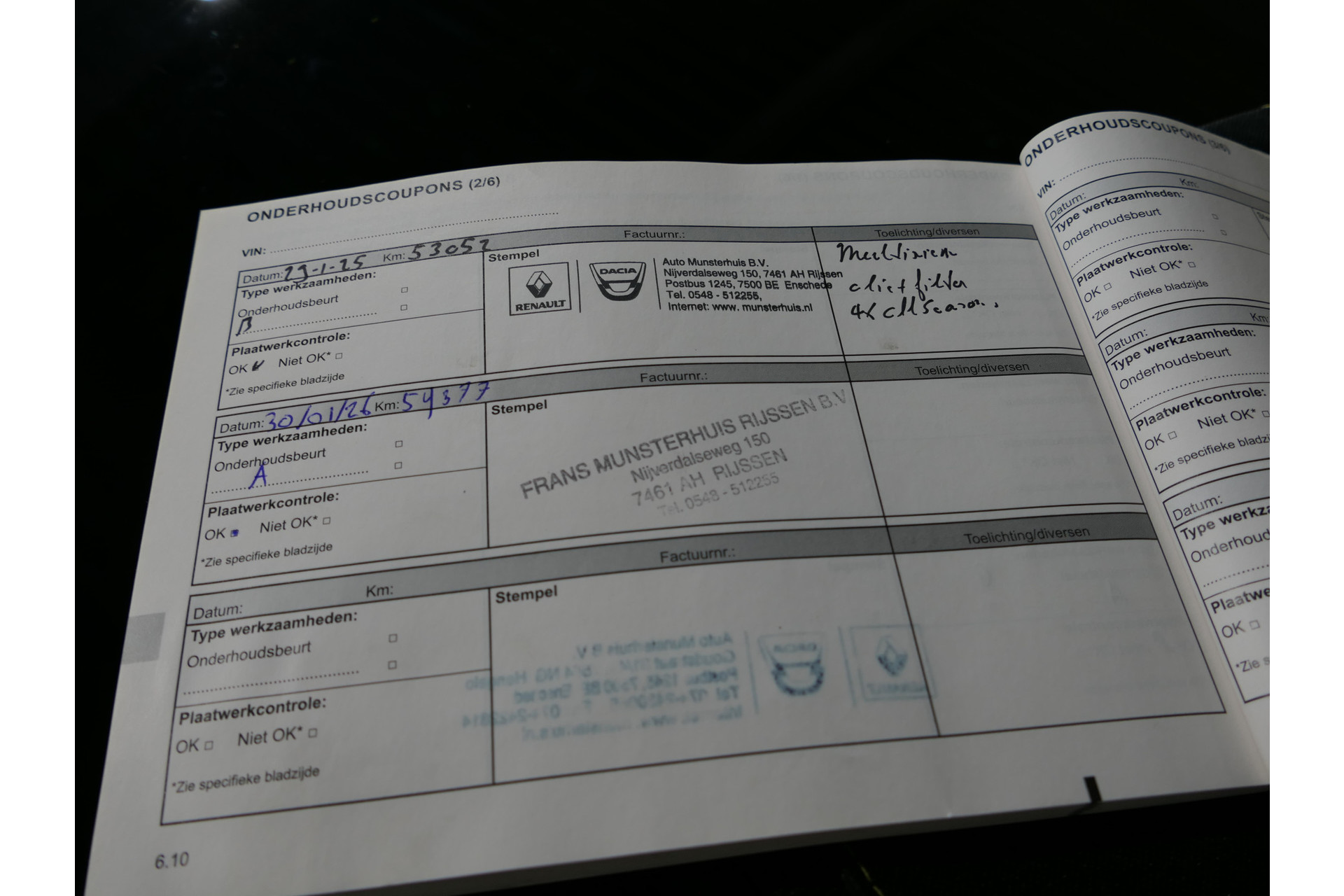 - Onderhoudsboekje aanwezig?