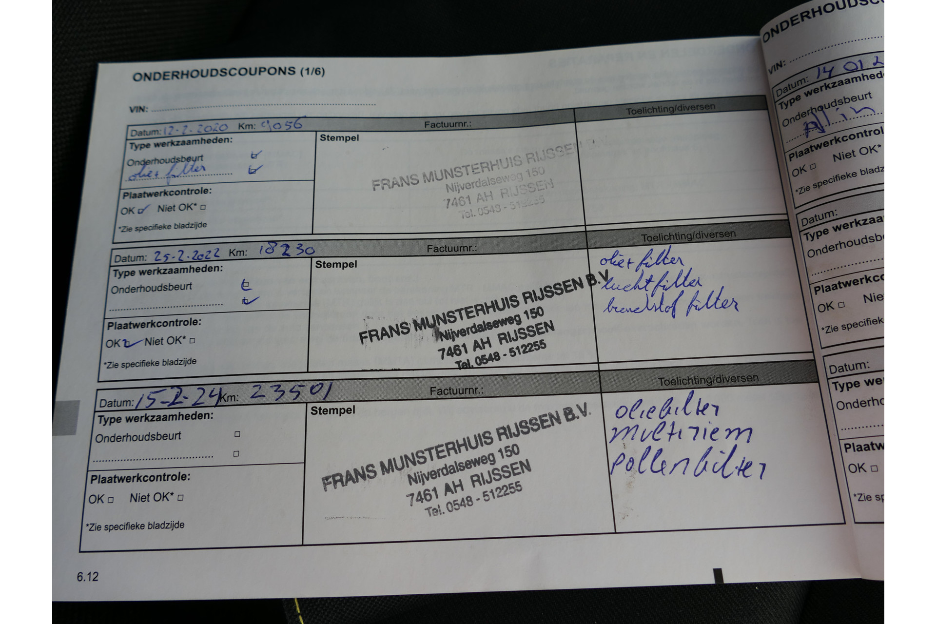 - Onderhoudsboekje aanwezig?