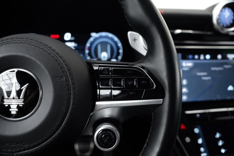 Met de nieuwste technologieën aan boord is deze Maserati in staat om zelf te reageren op potentieel gevaarlijke situaties op de weg. Dat de auto steeds meer taken van de bestuurder overneemt, merkt u bijvoorbeeld aan het systeem voor verkeersbord-detectie in deze Maserati. Voorzien van het Lane-keeping systeem. Ofwel: blijf automatisch in je baan. Met de vermoeidheidsassistent bent u ook op lange ritten veilig op pad. Het systeem geeft een waarschuwing zodra het tijd is voor een pauze.