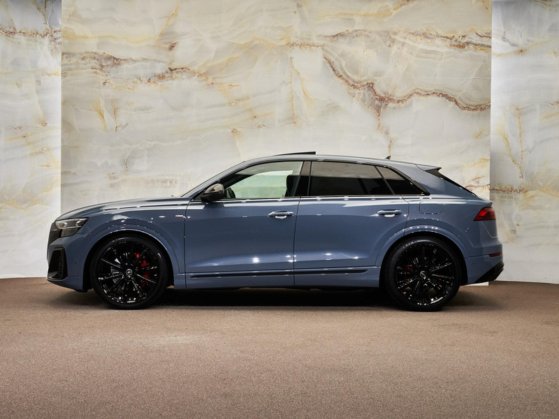 Dit betreft een zeer luxe en krachtig uitgevoerde Audi Q8 60 TFSI e Quattro S-tronic (490 pk) Pro Line S Competition. Kleur exterieur: Kemoragrijs metallic (Audi Exclusive) (Q0Q0) en interieur: Leder Valcona met S-logo's en rode stiksels in ruitpatroon (N0Q). Dit betreft een nieuwe auto. Uiteraard is alle documentatie aanwezig. Nieuwprijs circa € 184.000,-. Voorzien van vele opties zoals: