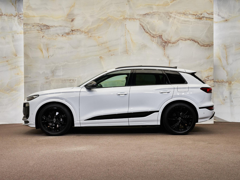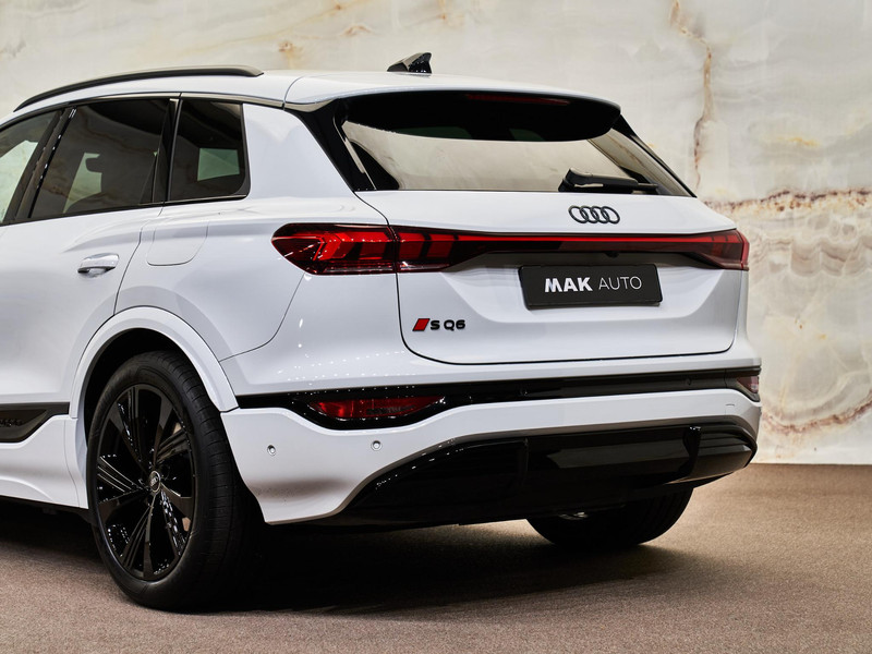 Dit betreft een zeer luxe en krachtig uitgevoerde Audi SQ6 e-tron Quattro (490 pk - overboostvermogen 517 pk). Kleur exterieur: Gletsjerwit metallic (2Y2Y) en interieur: Interieur S met Sportstoelen Plus, leder zwart (PWO). Deze auto heeft slechts 9.887 km gereden en verkeert in absolute nieuwstaat. Uiteraard is alle documentatie aanwezig. Voorzien van vele opties zoals: