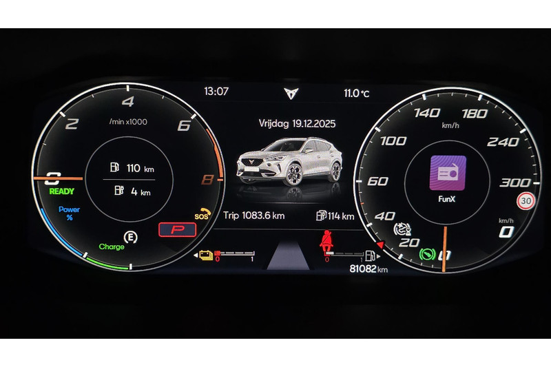 Omdat goed geïnformeerd rijden tegenwoordig om veel meer draait dan alleen snelheid en brandstofpeil, laat het digitale dashboard alle functies zien die u nodig heeft. De achteruitrijcamera geeft u duidelijk zicht op de ruimte achter de auto. Met adaptive cruise control houdt deze auto automatisch afstand tot uw voorligger. Filerijden? Doodvermoeiend. Daarom helpt de file assistent zo nodig een handje. Door automatisch afstand te houden, en te stoppen als uw voorligger stilstaat. Deze CUPRA Formentor is 'connected'. Belangrijke functies worden permanent gemeten en zijn uit te lezen via een speciale app, ook op afstand. Extra opties op deze auto zijn: dashboard met spraakbediening, full map navigatiesysteem, electronic climate control, draadloos opladen, DAB ontvangst en regensensor.