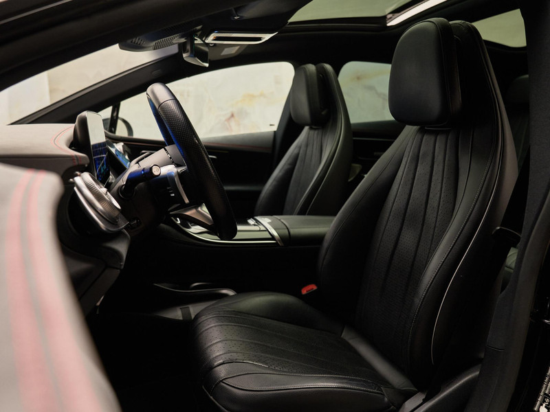 Het comfortniveau is hoog dankzij Multicontourstoelen met massagefunctie (399), stoelverwarming voorin (873), THERMOTRONIC 4-zonen klimaatregeling (581) en het Memorypakket (275). De rijervaring wordt verfijnd door AIRMATIC luchtvering (489) en Achterasbesturing (201). De sfeer binnenin wordt bepaald door Sfeerverlichting Premium (891) en Connected Light (878). Het interieur is verder afgewerkt in leder zwart/antraciet (231A) met MB-sterren lasercut-sierdelen (51H).