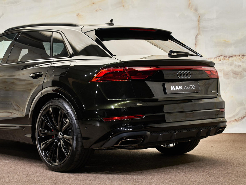 Dit betreft een zeer luxe en krachtig uitgevoerde Audi Q8 60 TFSI e Quattro S-tronic (490 pk) Pro Line S Competition. Kleur exterieur: Dark Olive metallic (Audi Exclusive) (Q0Q0) en interieur: Leder Valcona met S-logo's en stiksels in ruitpatroon (N0Q). Dit betreft een nieuwe auto. Uiteraard is alle documentatie aanwezig. Nieuwprijs circa € 172.000,-. Voorzien van vele opties zoals: