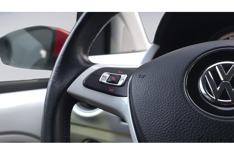 Met de stuurwielbediening van het audio-installatiesysteem, kunt u probleemloos uw ogen op de weg houden. Deze Volkswagen Up! is voorzien van sensoren aan de achterzijde om een achteropkomend verkeer waarschuwing te geven als de afstand tussen u en een achterligger te klein is. Parkeersensoren helpen u tijdens het in- en uitparkeren. De auto neemt u werk uit handen doordat hij zelf veel in de gaten houdt. Een regensensor en een automatisch inschakelbare verlichting nemen waar wanneer de ruitenwissers en het licht aan moeten. Meer rijcomfort en minder brandstofgebruik? Even de cruise control instellen en dan ontspannen rijden! Met airconditioning, lederen stuur, centrale deurvergrendeling met afstandsbediening, boordcomputer en lederen versnellingspook is deze Volkswagen helemaal compleet.