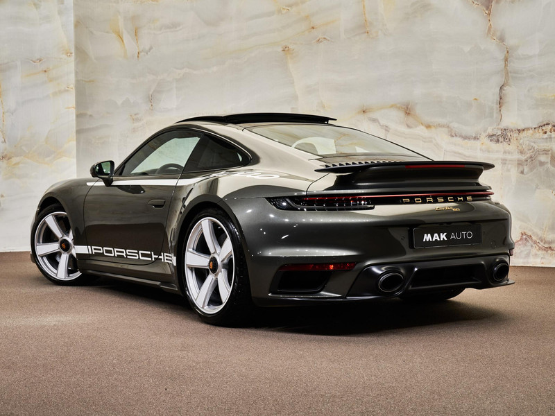 04T: Heritage Design pakket 50 Years Turbo 9VJ: Burmester® High-End Surround Sound System 0P5: Sportuitlaatsysteem met sportstaartpijpen in zilver 3FE: Elektrisch bedienbaar glazen schuifdak 56D: 20-21 inch Sport Classic wielen in wit/zilver 8T3: Adaptive Cruise Control VC2: Garage door opener