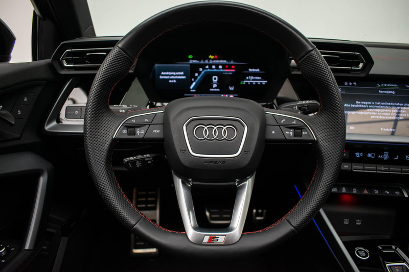 Het zijn juist de Duitse autofabrikanten die steeds opnieuw grenzen verleggen, nieuwe technieken ontwikkelen en auto's nog beter maken. Deze Audi A3 Sportback is daar een goed voorbeeld van, een auto die is ontwikkeld om op hoog niveau, veilig en comfortabel te rijden onder alle omstandigheden. Ten opzichte van het standaard model onderscheidt deze Audi zich met sportieve S-Line styling. Zuiniger, schoner en stiller: dat zijn de voordelen van de hybride motor in deze Audi A3 Sportback. De slimme combi van brandstof- en elektromotor is goed voor het milieu én de portemonnee! Leren bekleding versterkt de topklasse uitstraling van het interieur. Behaaglijk onderweg zijn? Als bestuurder geniet u van de verwarmbare voorstoelen. Net als uw bijrijder! Ziet er goed uit, die sportstoelen. Maar waar het om gaat, is de solide zit onder alle omstandigheden. Licht, luxe en gemak komen samen in de vorm van het elektrische bediende glazen panoramadak. Een handige voorziening op deze auto is de elektrische achterklep die u op afstand kunt openen. Perfect zicht bij nacht en slecht weer? Dat leveren de koplampen met matrix LED-verlichting. Tot de uitrusting behoren ook 17 inch lichtmetalen velgen, dakspoiler, donker getint glas achter, in delen neerklapbare achterbank, LED-achterlichten en verstelbare lendensteunen.