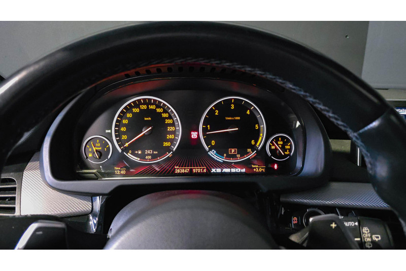 Uw nieuwe auto staat klaar voor vertrek. Stap gerust in, deze BMW X5 heeft 283847 kilometer gelopen en is van het bouwjaar 2015. Met zijn dieselmotor en automatische transmissie is dit een prima auto voor nog vele kilometers. Ook op de minder vlakke wegen zoeft u lekker door dankzij de luchtvering. U past de stoelen moeiteloos aan, ze zijn elektrisch in te stellen en hebben bovendien een geheugen. Het interieur glanst in daglicht door het elektrisch bedienbare panoramadak. Een praktische extra is de elektrisch bedienbare achterklep die opent en sluit met een druk op de knop. Bij de uitrusting van deze auto horen onder meer 19 inch lichtmetalen velgen, LED koplampen, adaptief dempingsysteem, extra getint glas, in delen neerklapbare achterbank en verstelbare lendensteunen.