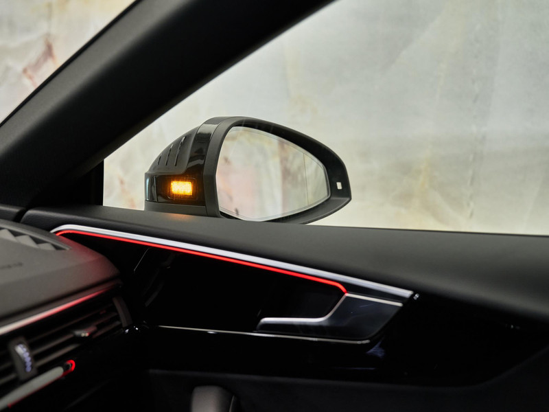 Het interieur biedt een perfecte balans tussen sportiviteit en comfort. De sportstoelen vóór (Q1D) zijn elektrisch verstelbaar (3L4) en voorzien van geheugenfunctie voor de bestuurdersstoel, stoelverwarming vóór (4A3) en elektrisch verstelbare lendensteunen (7P1). De hoogwaardige afwerking met interieuraccenten hoogglans zwart (GT6), lichtpakket met ambient lighting (QQ1) en zelfdimmende binnenspiegel (4L6) zorgt voor een luxe ambiance.
