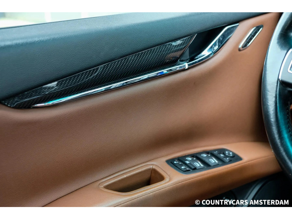 Stap in een wereld van comfort en technologie met een uniek gekleurd interieur, een opvallend carbon pakket en moderne voorzieningen zoals een achteruitrijcamera, cruise control, stoelverwarming, DAB+ radio, bi xenon verlichting en een imposante Maserati-grille. Hier ervaar je niet alleen autorijden; je omarmt een levensstijl van ongeëvenaarde elegantie en exclusiviteit.