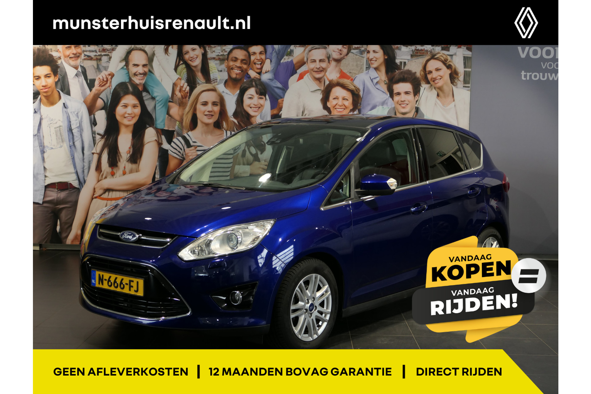 Bij deze auto adverteren wij met de slogan ‘Vandaag kopen = vandaag rijden’.