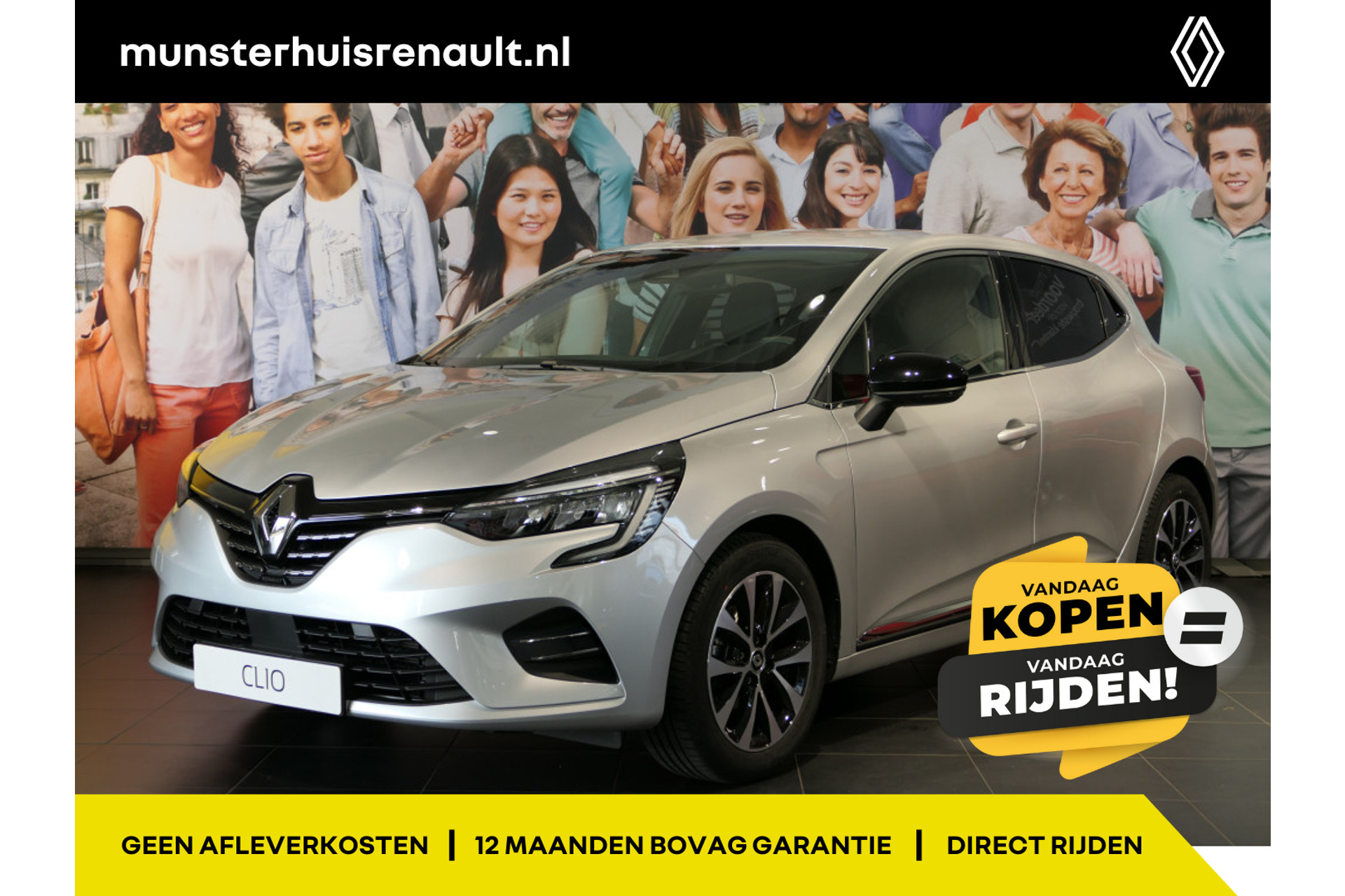 Bij deze auto adverteren wij met de slogan ‘Vandaag kopen = vandaag rijden’.