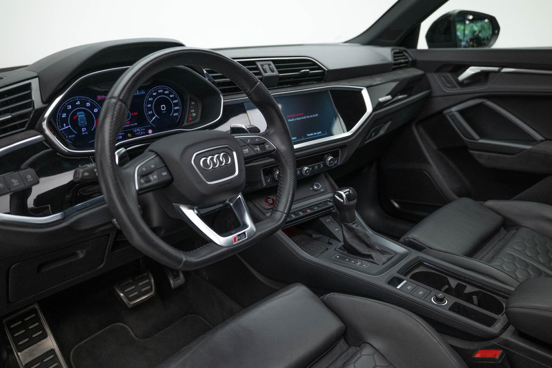 De nieuwste veiligheidssystemen komen in deze Audi RSQ3 samen. Belangrijk voor uw veiligheid en die van uw passagiers is de verkeersbord-detectie in deze auto. Het Lane-keeping systeem zorgt voor een automatisch constante positie binnen de rijstrook. Afdwalen is uitgesloten. De forward collision warning reduceert het gevaar van een botsing met een voorligger significant. Ook helpen het dodehoekdetectie, hill hold functie, autonoom remsysteem en bandenspanningcontrolesysteem, uw rit tot een veilige rit te maken.