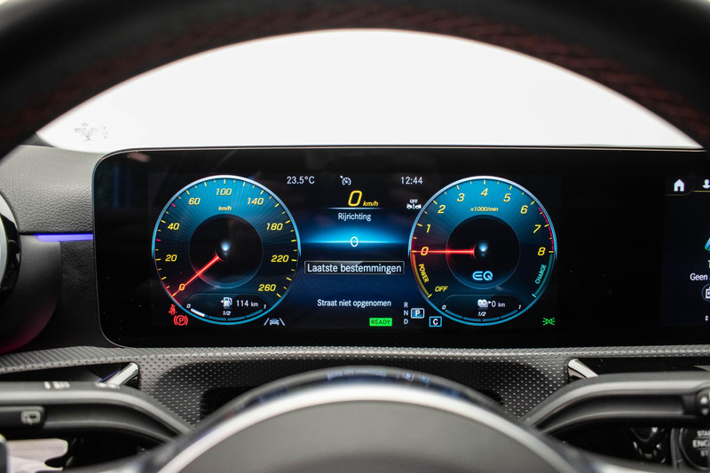 Modern design en bijzondere techniek bepalen de kwaliteiten van de hybride Mercedes-Benz A-klasse. Deze auto wíl gewoon gezien worden: kijk maar naar de sportieve AMG-styling. Deze Mercedes-Benz A-klasse heeft een hybride motor, dus een combi van brandstof en elektrisch. Een slim en milieuvriendelijk systeem dat ook nog eens lekker kostenbesparend is. De verwarmbare voorstoelen zijn een weldaad voor rug en schouders. Rijden met pit? Geen punt! De sportstoelen geven steun en stevigheid! Van binnen lijkt het allemaal uitermate ruim dankzij de vrije inval van daglicht via het elektrisch bediende glazen panoramadak. Dankzij de matrix LED-verlichting geven de koplampen ook in het donker daglicht. Ook 18 inch lichtmetalen velgen, AMG-styling, trailer assistent, donker getint glas achter, in delen neerklapbare achterbank en LED-achterlichten horen tot de voorzieningen op deze auto.