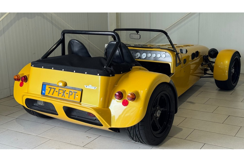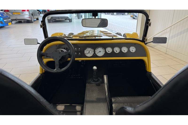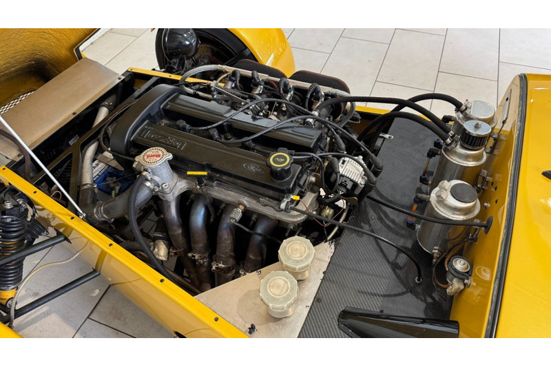 Prachtige HKT Super Seven Hoeckmayr KFC Technic • 2.0 liter Ford Zetec motor origineel 136 pk • “Fast Cam” nokkenassen (500 EUR) • Nieuwe getande riem (januari 2025), van Gates en nieuwe waterpomp in doos (krijg je erbij) • 4-in-1 rvs uitlaat met originele demperbeschermer van HKT (in zwart) • Raceline waterrail kit (400 EUR) • Nieuwe koppeling (2024) • ARP lagerschaalbouten (en lagerschalen vervangen in 2014) • Jenvey stacked injectie met groene injectoren van Ford Cosworth (2500 EUR) • Nieuwe ECU (1400 EUR) en opnieuw afgesteld op testbank in juli 2025. Afgesteld op 160pk. Voor meer pk (180+) zou er een demper met grotere diameter gemonteerd moeten worden. • LSD differentieel van een Ford XR4i • Wilwood remmen voor • Roll cage (1000 EUR) • Onafhankelijke achteras • Poli bushings onder gehele auto • 4 nieuwe schokbrekers (