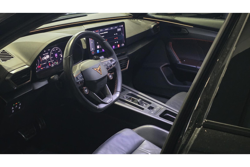 De automatische veiligheidssystemen in deze CUPRA fungeren als een extra paar ogen. En dat niet alleen, ze kunnen ook actief ingrijpen, om zo u en uw passagiers te beschermen. In het instrumentarium kunt u bovendien de verkeersborden zien die u onderweg tegenkomt. Zo helpt deze CUPRA u om veiliger te rijden. Deze CUPRA Formentor is ook behulpzaam als het gaat om een rechte koers. Het Lane-keeping systeem signaleert en corrigeert als u onbedoeld de rijstrooklijnen dreigt te overschrijden. De forward collision warning reduceert het gevaar van een botsing met een voorligger significant. De auto is ook uitgerust met dodehoekdetectie, hill hold functie, vermoeidheidsherkenning, autonoom remsysteem en bandenspanningcontrolesysteem.