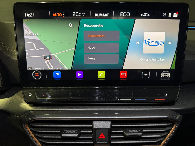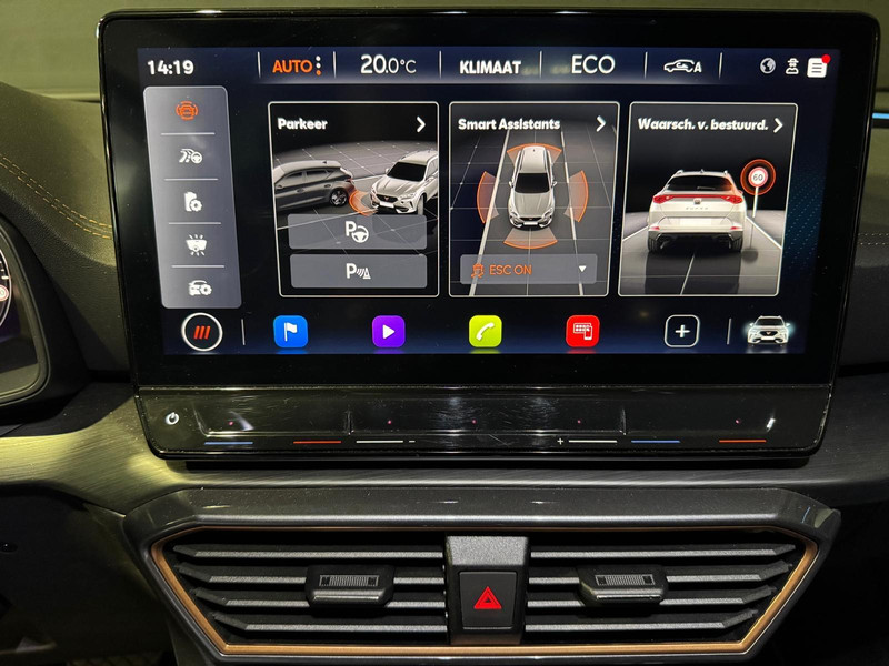 Het digitale dashboard vertelt u onderweg alles dat bijdraagt aan een veilige, efficiënte rit. Achteruitrijden en inparkeren worden een eitje dankzij de achteruitrijcamera. Adaptive cruise control houdt de ingestelde snelheid vast en houdt afstand tot het voertuig voor u. De aanwezige file assistent meet de afstand tot uw voorligger en zorgt voor een veilige afstand. Staat het voor u opeens stil? Dan zorgt het systeem dat de auto ook stopt. Dankzij de spraaksturing bedient u verschillende functies zonder uw handen van het stuur te halen. De uitrusting van deze CUPRA is met connected drive services, navigatiesysteem, automatische airconditioning, draadloos opladen, DAB ontvangst en regensensor behoorlijk compleet.